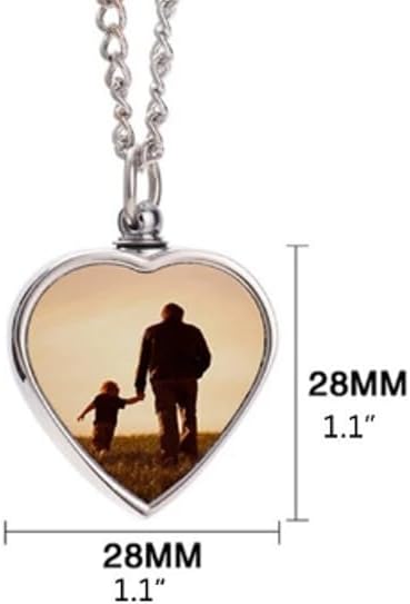 “Stainless Steel Heart shaped Urn necklace is a beautiful blend of sentiment and style. Designed to hold small portion of ashes, it also features a heartfelt message that offers comfort and remembrance. Personalize it further by adding a cherished photo or image, making it a meaningful keepsake or memorial gift. Fill kit included, silver.”